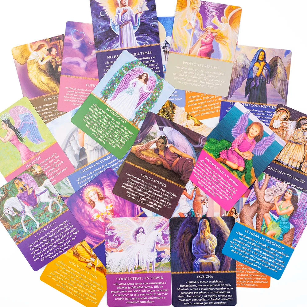 La Guía Diaria de los Ángeles es un oráculo de 44 cartas diseñado para ofrecer orientación, calma y apoyo espiritual en tu día a día. Cada carta transmite mensajes claros y amorosos que te ayudan a conectar con tu intuición, elevar tu energía y encontrar respuestas desde la serenidad.