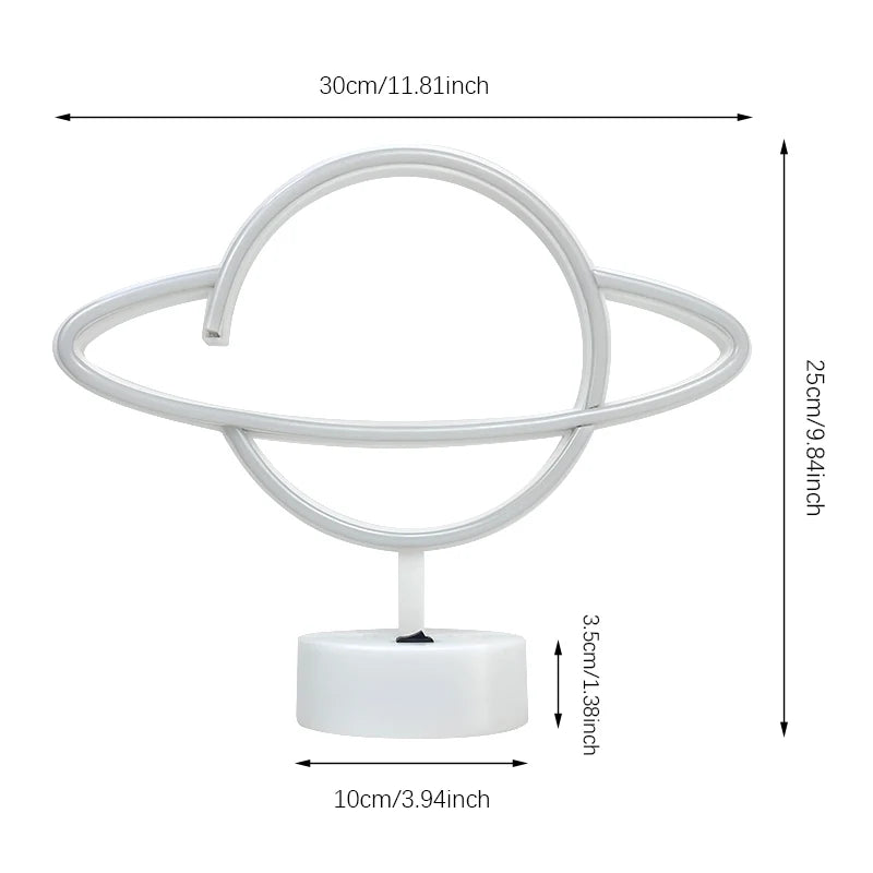 • Eye-catching pink & blue planet-shaped LED neon glow
