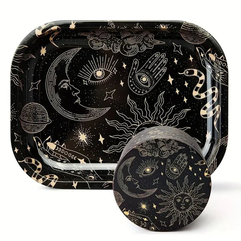 Sun & Moon Metal Grinder & Rolling Tray Set